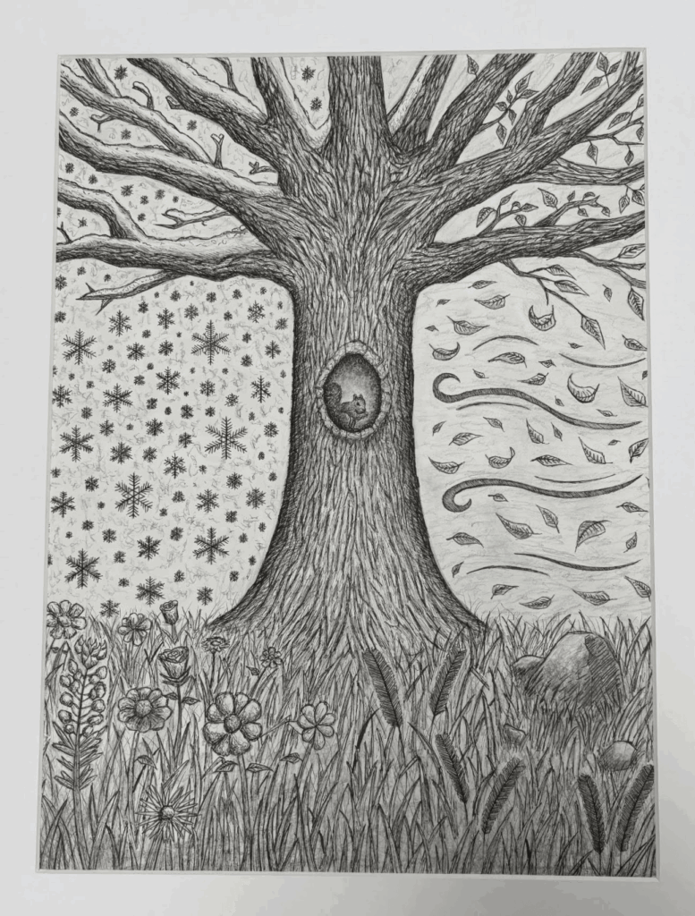 I was chosen to be 1 of the 2 students to represent the high school for the Region 12 art showcase. The piece is on display for the next two years.